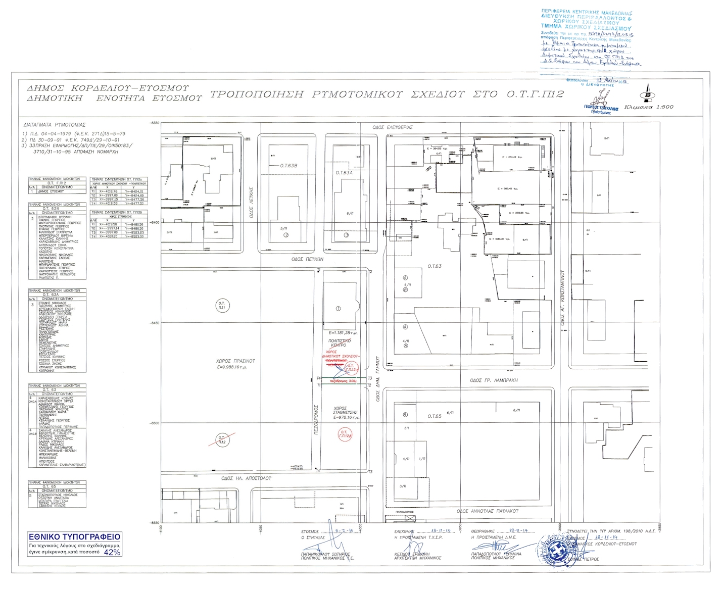 ε) Καταργείται ο εκ παραδρομής και μη διαγραφείς συμβολισμός Π12 στον ενιαίο ΧΩΡΟ ΠΡΑΣΙΝΟΥ, ο οποίος προέκυψε από την πολεοδομική μελέτη που εγκρίθηκε με το από 30-09-1991 προεδρικό διάταγμα (ΦΕΚ 749/Δ/1991), και διατηρείται μόνο ο συμβολισμός Π11, όπως αυτά απεικονίζονται στο συνημμένο στην παρούσα απόφαση τοπογραφικό διάγραμμα σε κλίμακα 1:500.