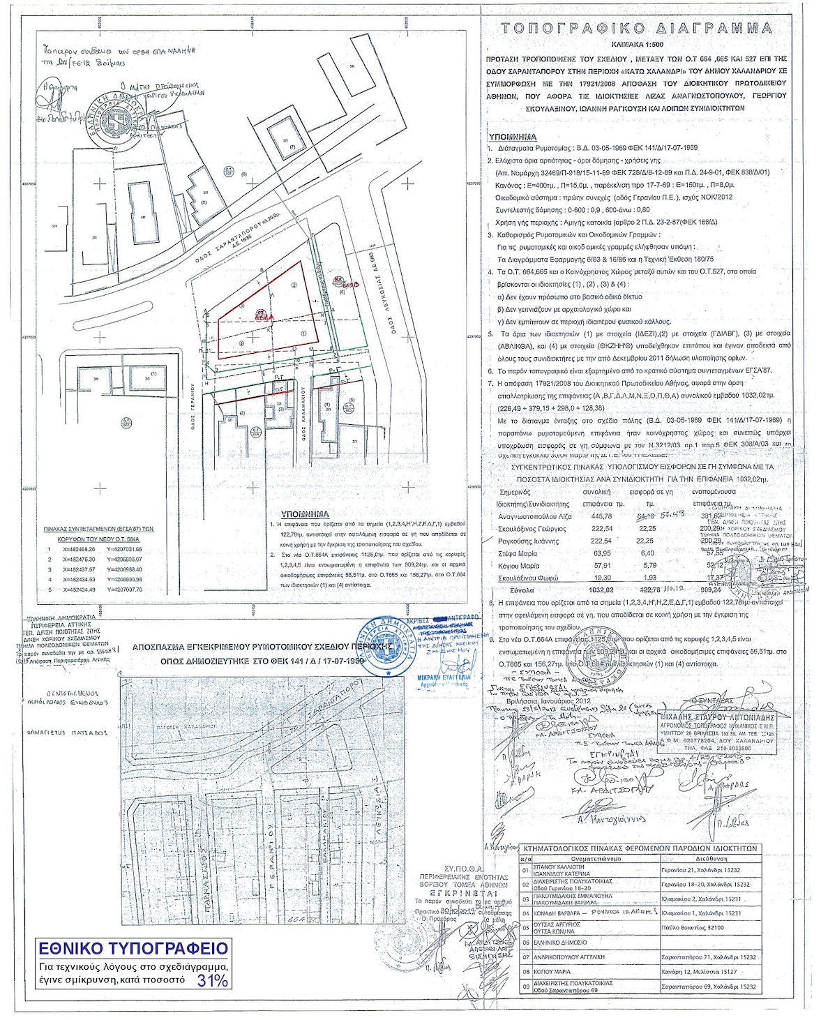 ΣΤ. Ο Δήμος Χαλανδρίου, τήρησε την προβλεπόμενη κατά νόμο διαδικασία δημοσιοποίησης και με την υπ' αριθμόν 45/2013 απόφαση της Επιτροπής Ποιότητας Ζωής και την υπ' αριθμόν 359/2013 απόφαση Δημοτικού Συμβουλίου του, εκδίκασε και απέρριψε υποβληθείσα ένταση ΕΜΜΑΝΟΥΛΗ ΓΙΑΚΟΥΜΙΔΑΚΗ και ΕΛΕΥΘΕΡΙΑΣ ΓΙΑΚΟΥΜΙΔΑΚΗ, κατά της πρότασης τροποποίησης του ρυμοτομικού σχεδίου, στα οικοδομικά τετράγωνα 664, 665 και 527 του Δήμου.
