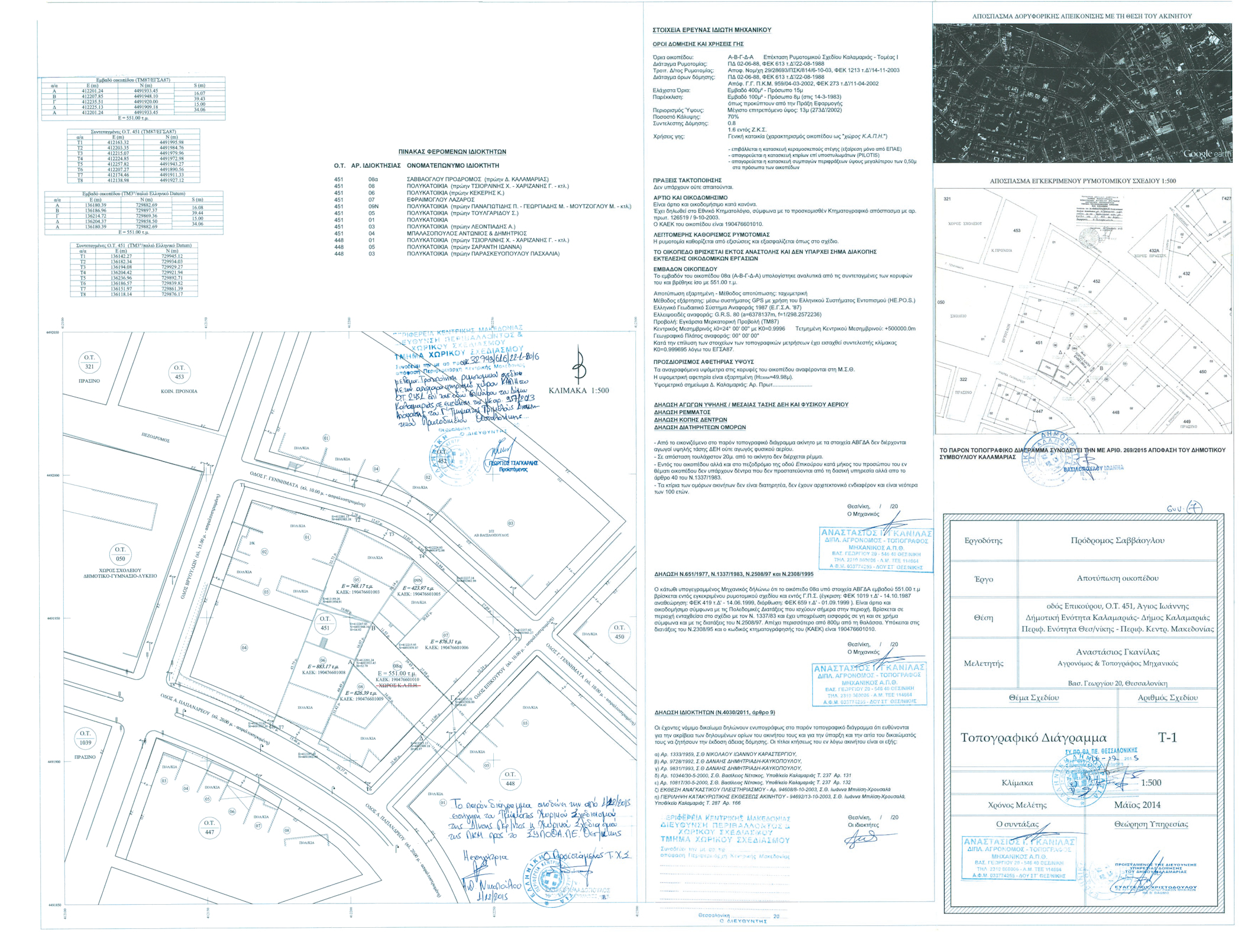 1. Την έγκριση της τροποποίησης του ρυμοτομικού σχεδίου στο οικοδομικό τετράγωνο Γ451 (2451) του Δήμου Καλαμαριάς με: