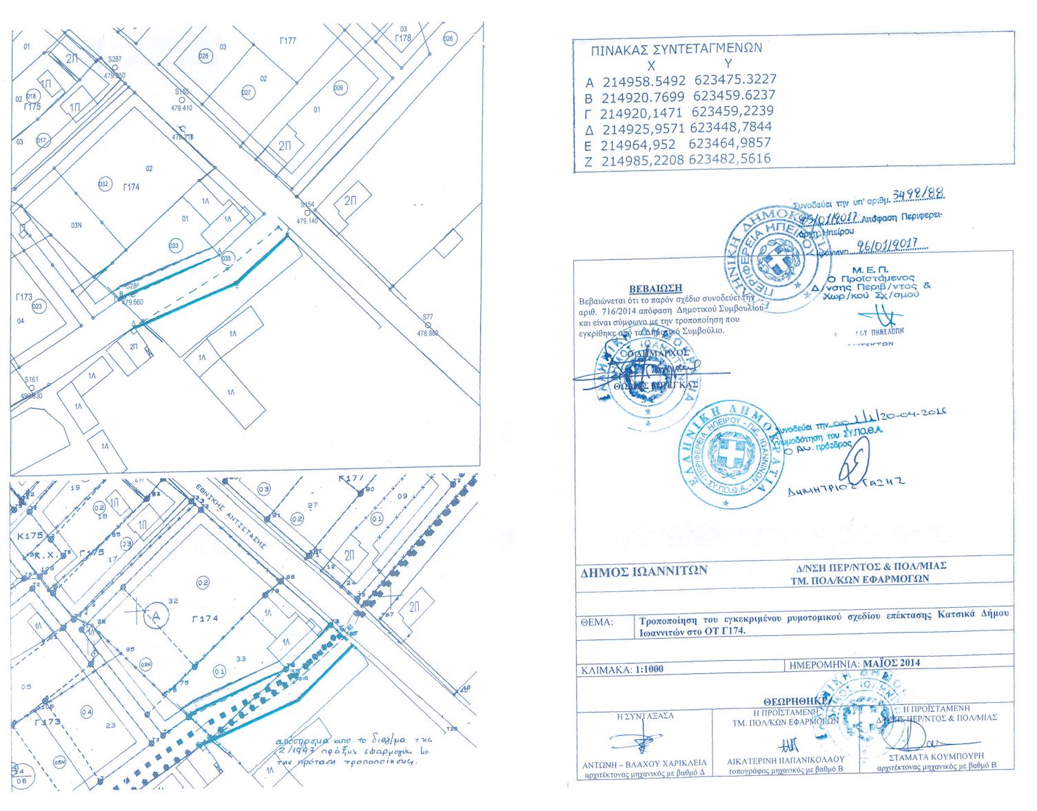 Απόφαση 3492/88/2017: Τροποποίηση του εγκεκριμένου ρυμοτομικού σχεδίου Κατσικάς του Δήμου Ιωαννιτών στο οικοδομικό τετράγωνο Γ174, (ΦΕΚ 20/ΑΑΠ/2017), 07-02-2017.