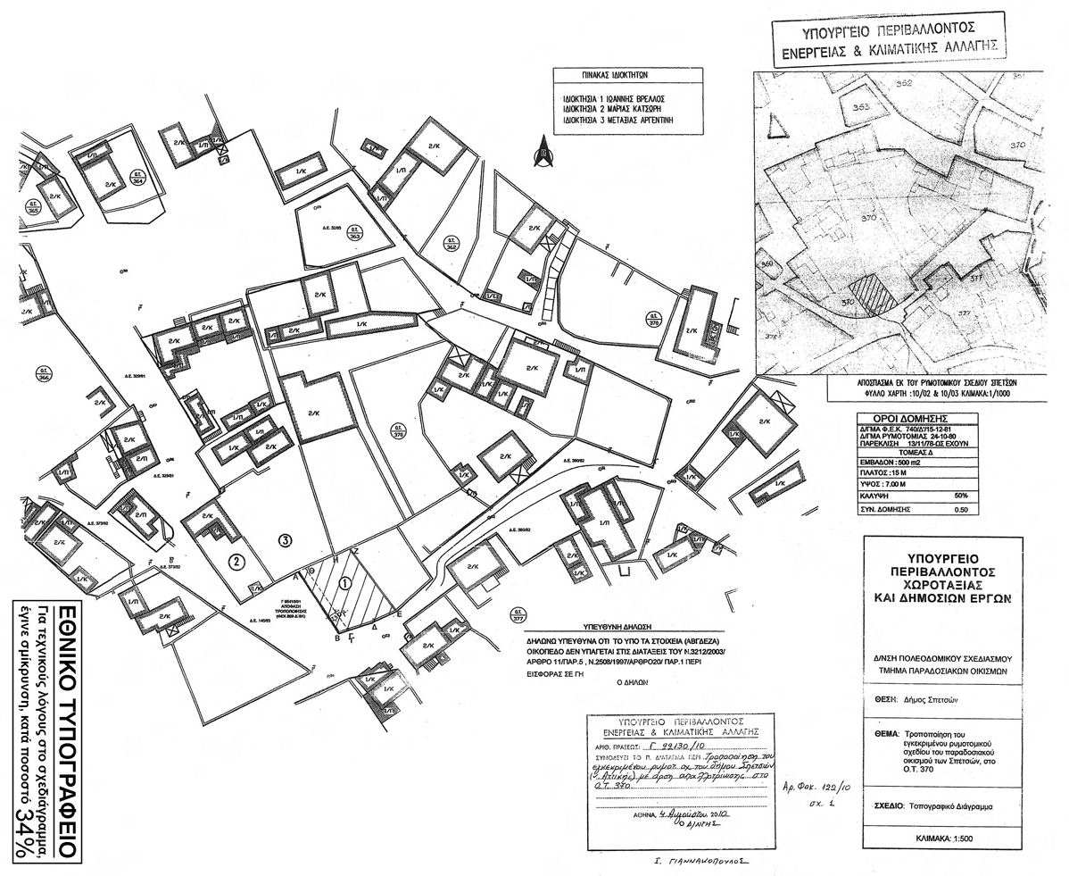 for(var i=0; i Εγκρίνεται η τροποποίηση του εγκεκριμένου ρυμοτομικού σχεδίου του Δήμου Σπετσών (νομού Αττικής) που έχει χαρακτηριστεί ως παραδοσιακός με το από 19-10-1978 προεδρικό διάταγμα (ΦΕΚ 594/Δ/1978) με άρση της απαλλοτρίωσης σε τμήμα του κοινόχρηστου χώρου στο οικοδομικό τετράγωνο 370 και μετατροπή του τμήματος αυτού σε οικοδομήσιμο χώρο, όπως φαίνεται στο σχετικό πρωτότυπο διάγραμμα σε κλίμακα 1:500, που θεωρήθηκε από τον Προϊστάμενο της Διεύθυνσης Τοπογραφικών Εφαρμογών με την 22130/2010 πράξη του και που αντίτυπό του σε φωτοσμίκρυνση δημοσιεύεται με το παρόν διάταγμα. ";