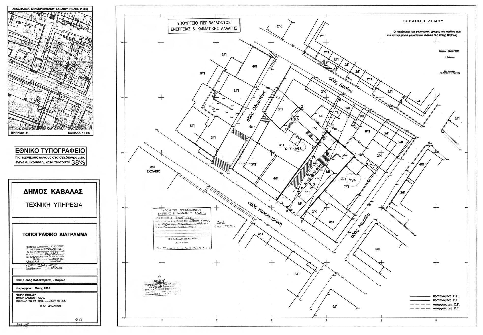 for(var i=0; i Εγκρίνεται η τροποποίηση του εγκεκριμένου ρυμοτομικού σχεδίου του Δήμου Καβάλας (Νομός Καβάλας) και ειδικότερα με την κατάργηση της οδού μεταξύ των οικοδομικών τετραγώνων 493 και 494, την ενοποίηση των παραπάνω Οικοδομικών Τετραγώνων και την έγκριση πεζοδρόμου, όπως οι ρυθμίσεις αυτές φαίνονται στο σχετικό πρωτότυπο διάγραμμα σε κλίμακα 1:200, που θεωρήθηκε από τον Προϊστάμενο της Διεύθυνσης Τοπογραφικών Εφαρμογών με την υπ' αριθμόν 27057/2010 πράξη του και που αντίτυπο του σε φωτοσμίκρυνση δημοσιεύεται με το παρόν διάταγμα. ";