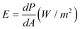 E (t), E ακτινοβολισμός ή πυκνότητα ισχύος: η ισχύς ακτινοβολίας που προσπίπτει πάνω σε μια επιφάνεια, ανά μονάδα επιφανείας, συνήθως εκφραζόμενη σε βατ ανά τετραγωνικό μέτρο [W m-2]. Οι τιμές των E(t), Ε προέρχονται από μετρήσεις ή μπορεί να παρέχονται από τον κατασκευαστή του εξοπλισμού.